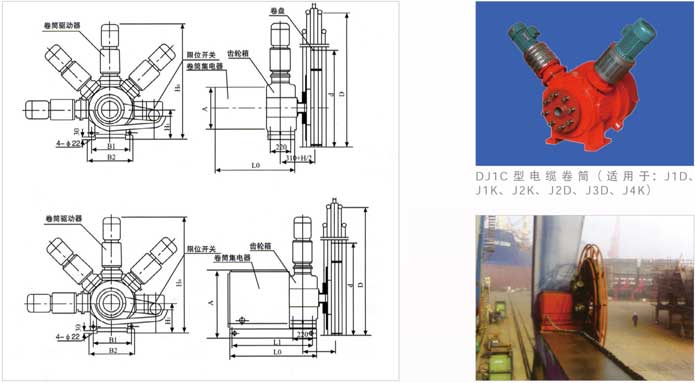 3、DJ1C 型磁滯式電纜卷筒廣泛應(yīng)用于港口門座起重機(jī)、集裝箱起重機(jī)、裝船機(jī)、卸船機(jī)、大型龍門式起重機(jī)、塔式起重機(jī)等重型機(jī)械設(shè)備的供電。